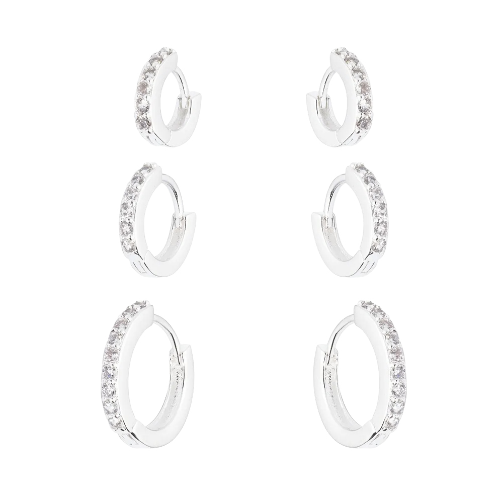 Trio de Argolas Cravejadas de Zircônias em Prata 925